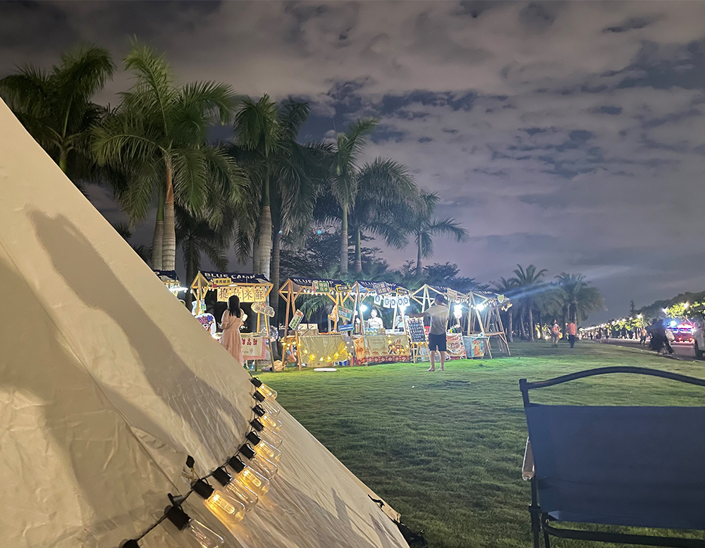 “浪潮市集”是环东浪漫线自有IP项目。环东浪漫线于2022年五一、十一等假期期间,招商引进各类美食、饮品、手工艺品摊主,打造潮流户外生活方式、年轻潮人聚集地。浪潮市集具备露营+市集两大活动功能,吸引了众多游客市民参加。